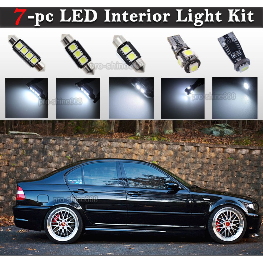 7 Pc White Canbus Led Interior Light Bulbs Package Kit Fit Bmw E46